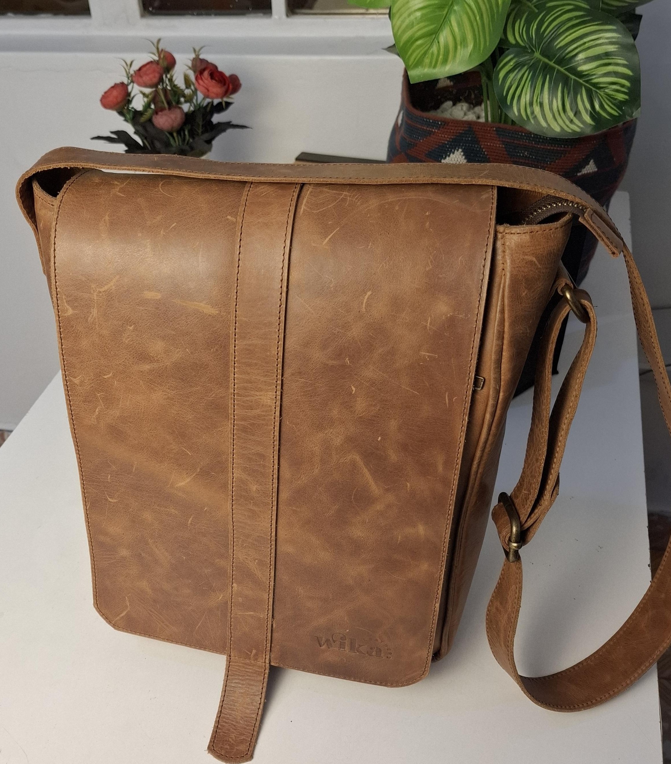 This manbag is made of genuine Kenyan leather.It has two inner laltop compartments and side pockets it is sleek enough to fit two slim laptops,diary,and charger plus other personal essentials. It has a zipped outer pocket for quick grabs and a secure flap .