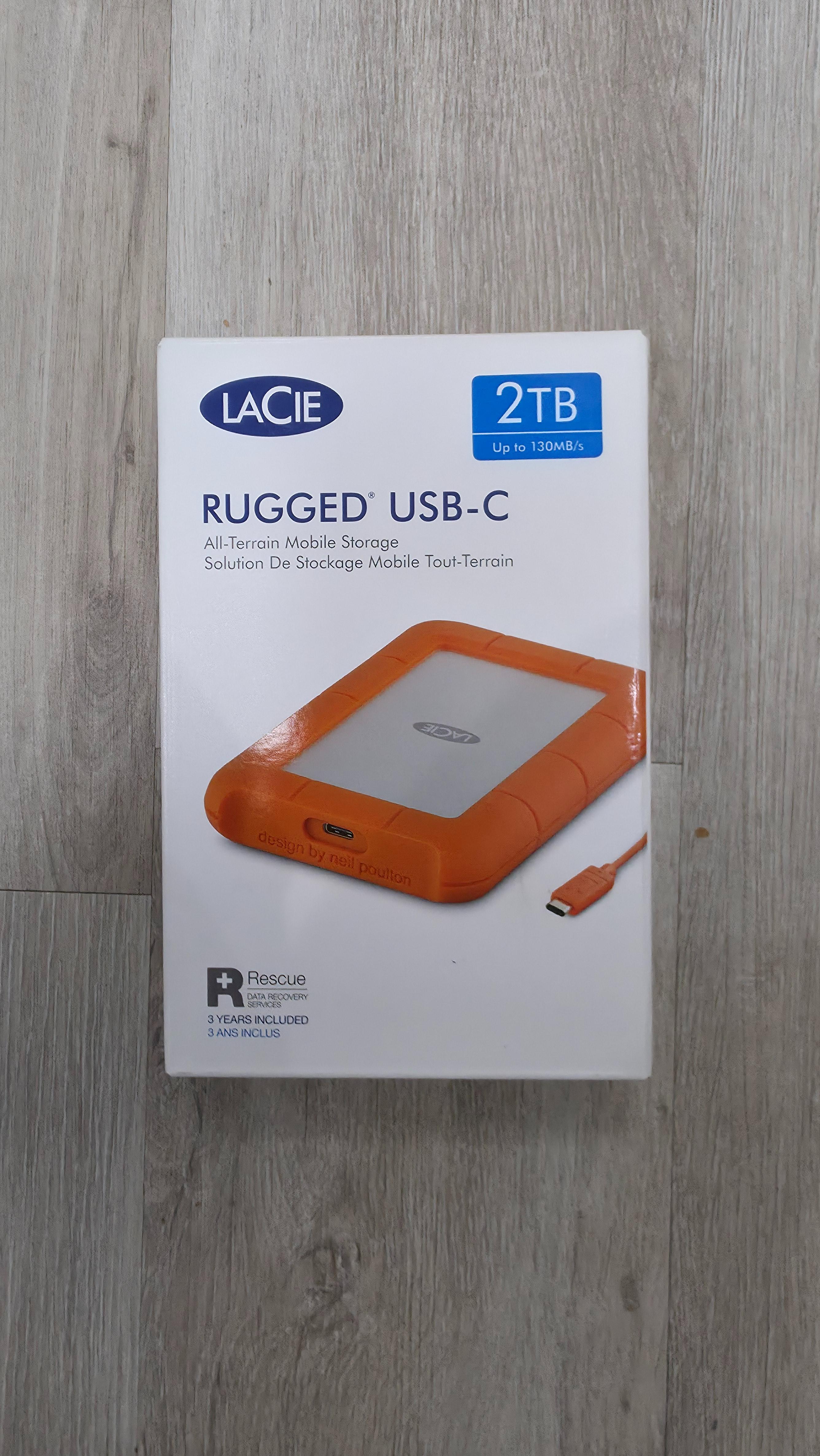 LaCie 2TB Rugged USB 3.1 Gen 1 Type-C External Hard Drive – Tough, Portable & Reliable Storage Trusted by photographers and filmmakers worldwide, the LaCie Rugged 2TB External Hard Drive combines durability with performance. Designed to withstand the toughest conditions, it’s resistant to drops, shock, rain, and dust, making it the perfect companion for fieldwork and travel. With a USB 3.1 Gen 1 Type-C interface (backward compatible with USB 2.0 and USB 3.0), it offers universal compatibility and fast transfer speeds. Whether you’re backing up RAW photos, 4K video, or project files, this drive ensures your data stays safe wherever you go.